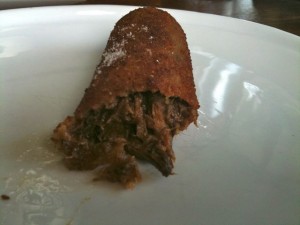 But the absolute standout is the braised beef and chilli croquettes with capsicum aioli – amazing! The beef is super succulent and flakey, packed into a little breadcrumbed sausage. There is a great heat from the chilli and the capsicum aioli, it is gorgeous!