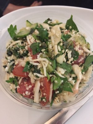I went the Cauliflower Tabbouleh with tomato, cucumber, mint and barley …. Which I have just realised I am not supposed to have barley on a gluten free diet – ooopps!! Oh well it was great.